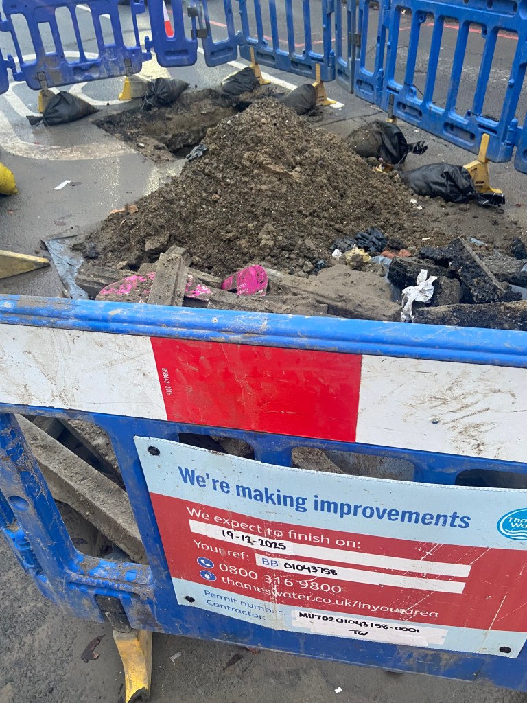 So we had the usual lack of coordination between diggers and pipe menders, and probably next the road repairers. To be finished on 19 December?