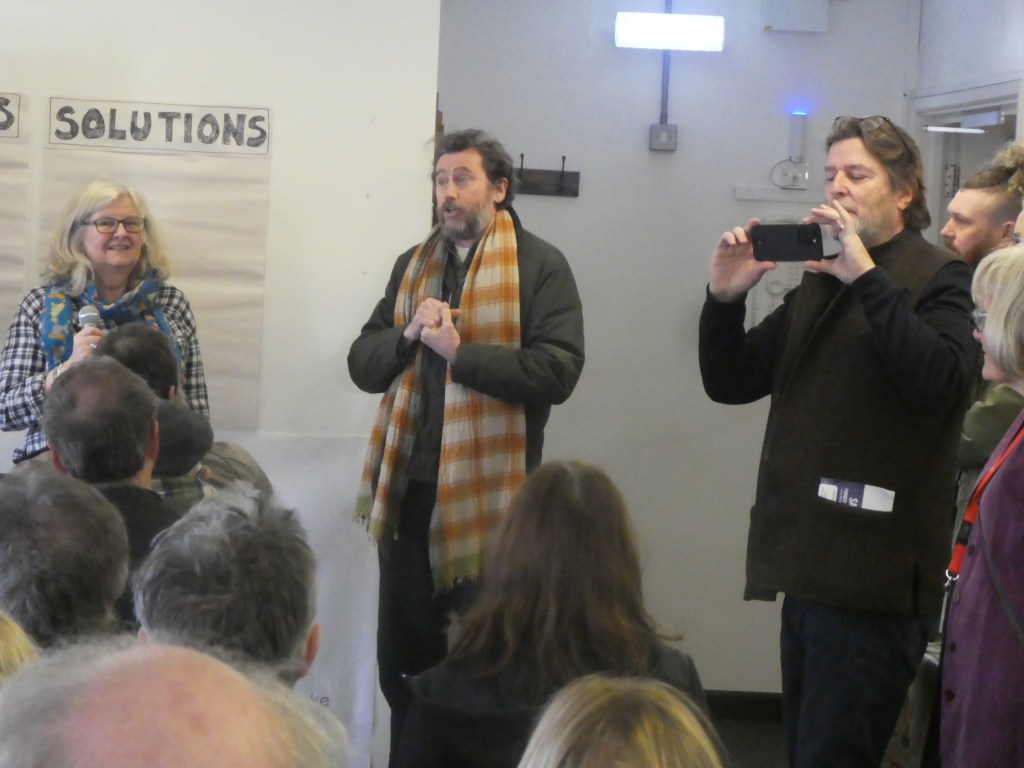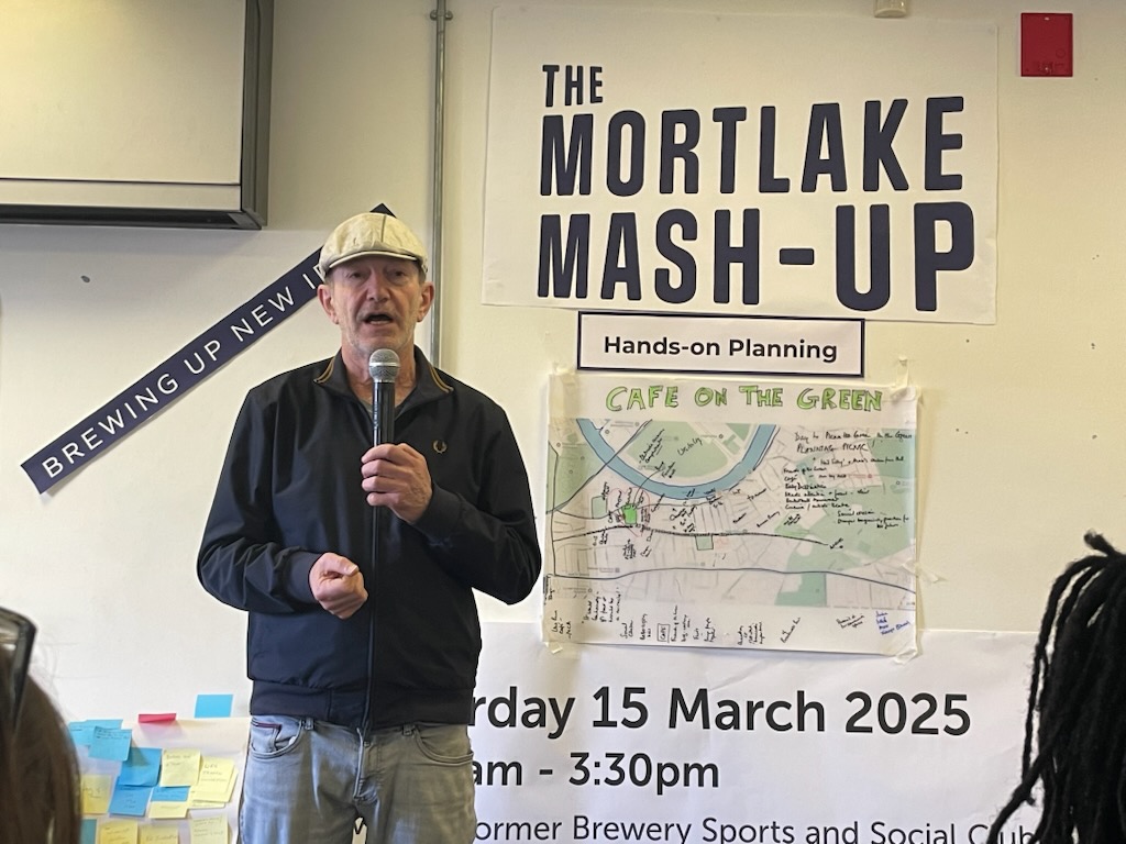 Damian Keogh (Co-Founder of the Story Collective, whose film studios are working on the site, speaking), Francine Bates (Chair Mortlake Community Association) and Charles Campion (JTP Community Planning Team) welcome participants to the Mash-Up.