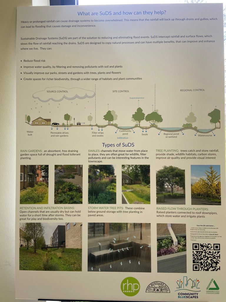 Sustainable Drainage Systems (SUDs) are part of the solution to reducing and eliminating flood events. Worth magnifying the illustrations to see the detail of these proposals.
