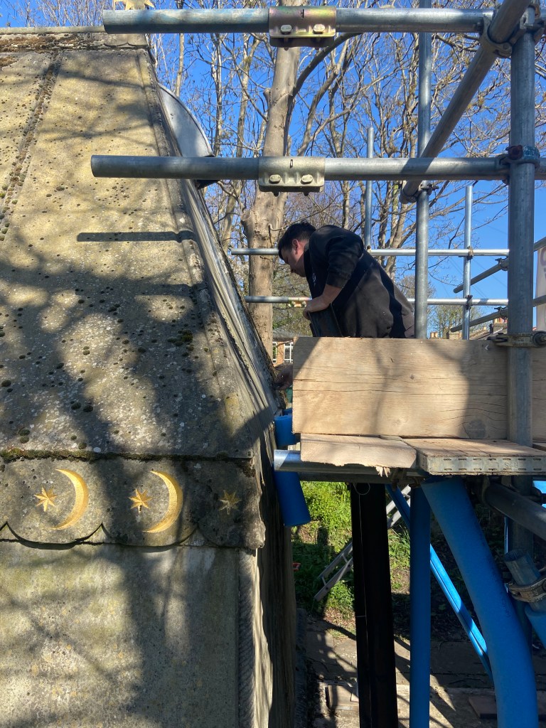 A visit to St. Mary Magdalen Church in Mortlake today produced a few surprises. It has been known for a while that the Lotteries Fund had given a grant to Habitats and Heritage to renovate the Burton Mausoleum in the graveyard. The project is known as Burton: Exploring Without Boundaries. The grant is for £250,000 to cover the works estimated at £150,000 with the balance going to educational purposes about the life of the renowned explorer Sir Richard Burton and his wife Lady Isobel.