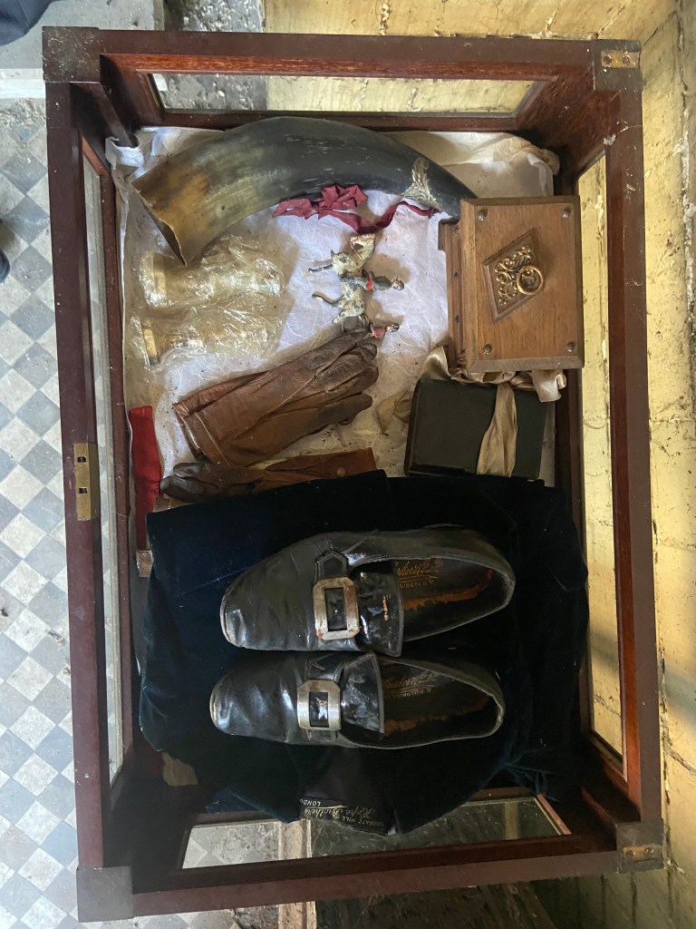 We were extremely fortunate to be granted access by the Custodian Fr Adrian. Nowhere on internet search engines will you find – until now – the photo of Guilaume below or his belongings lovingly maintained in the Mausoleum. The coffins remain in place.