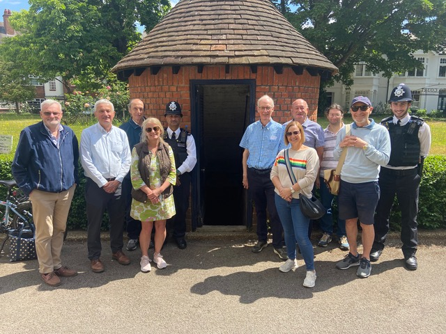 A local team made up of councillors, police, MESS Committee, Probus and an East Sheen Villager emerges from shelter.