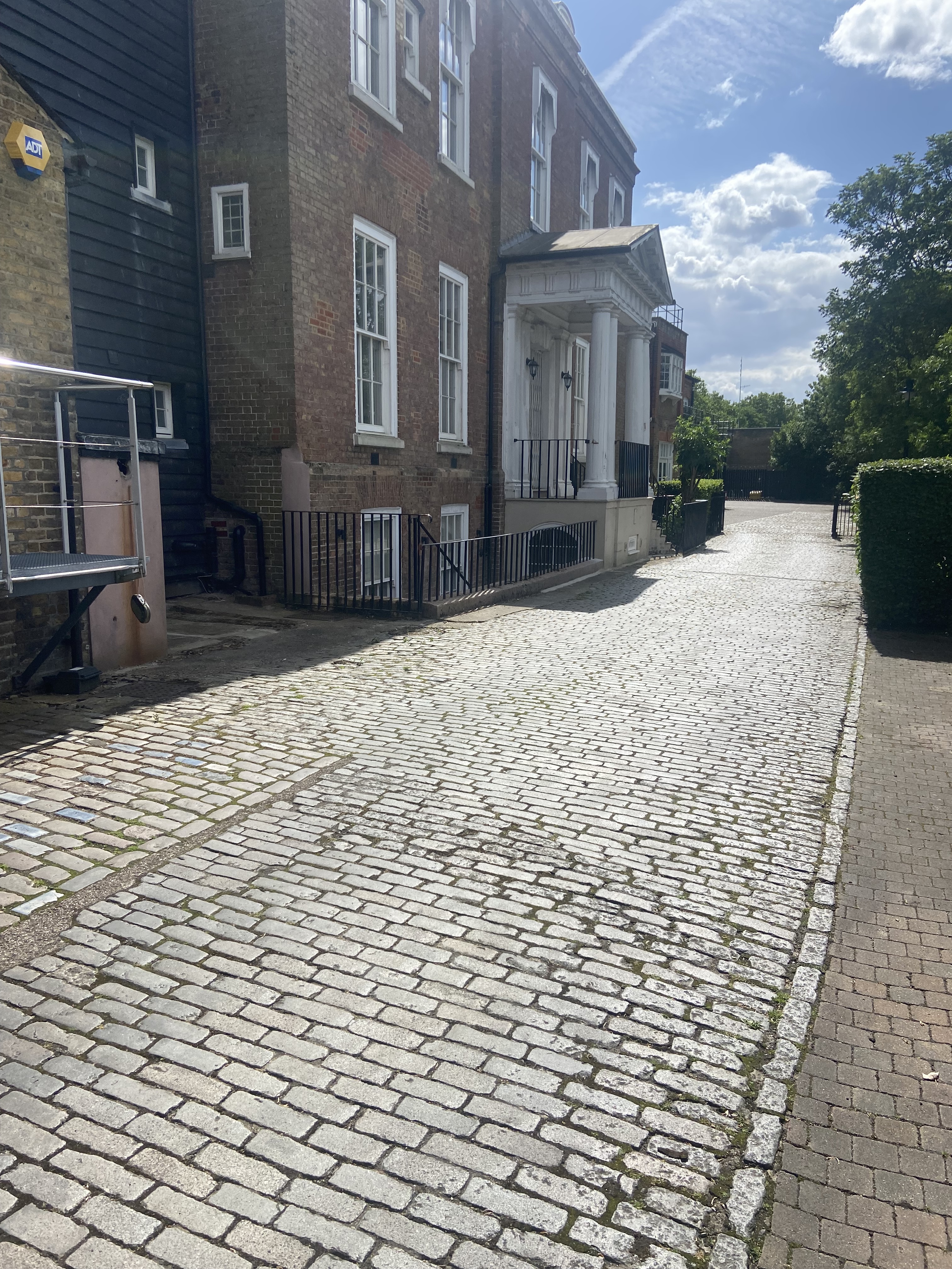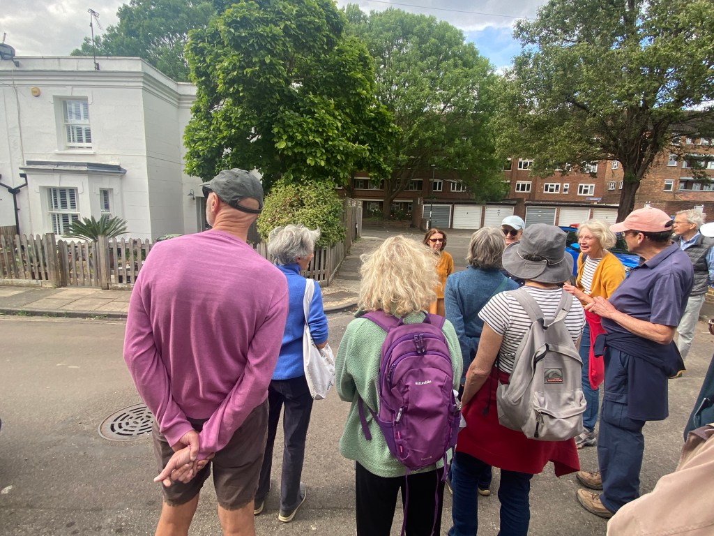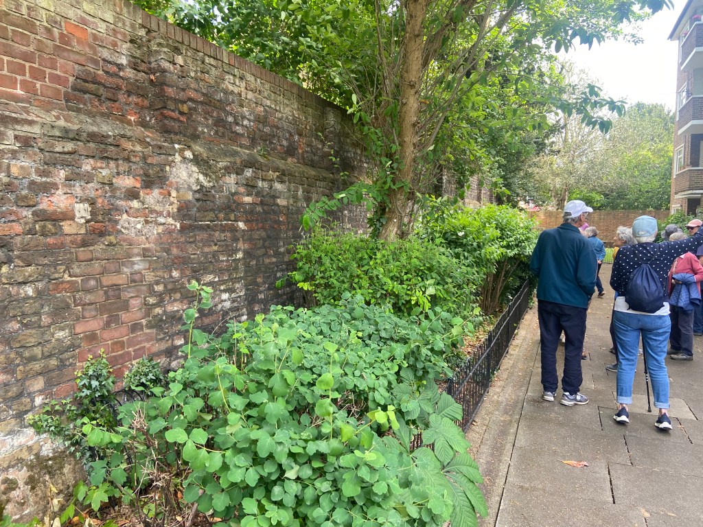 Examining the ancient wall of John Dee’s Garden by John Dee House in Mortlake High Street. Note the different bricks.