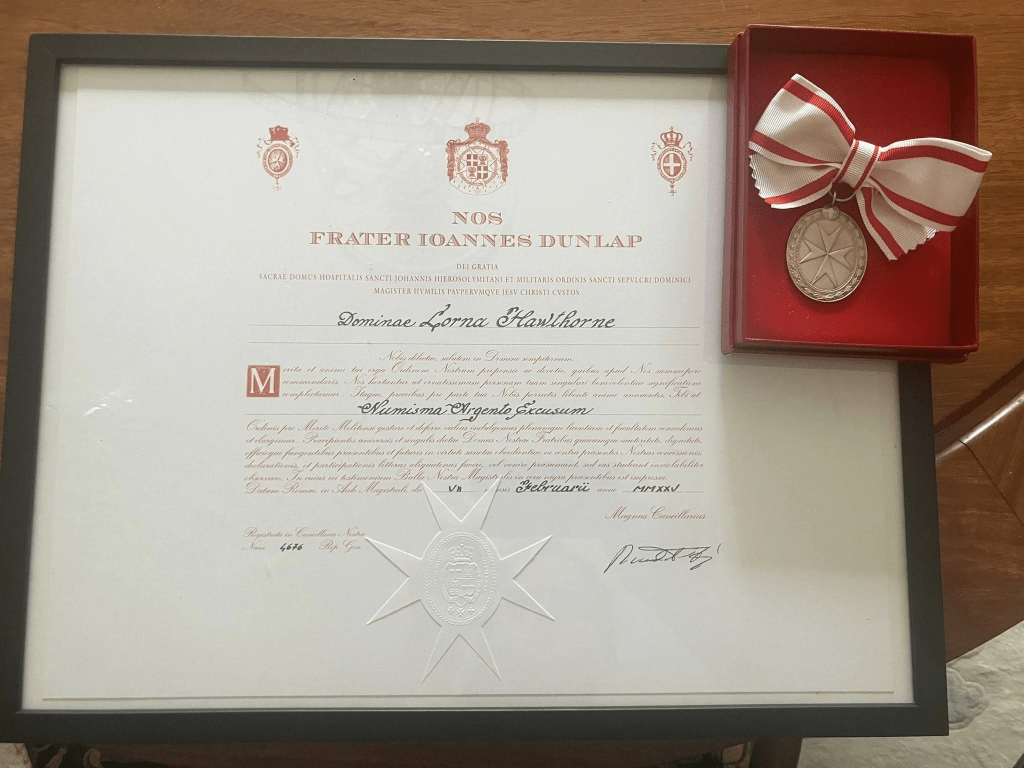 East Sheen resident Dominae Lorna Hawthorne has been awarded the Meritorious Order of Malta by the sacred house of the hospital of Saint John of Jerusalem and the military order of the Holy Sepulchre of our Lord at a ceremony at Brompton Oratory this week. The award recognises the twenty years Lorna has spent working to support homeless people in London.