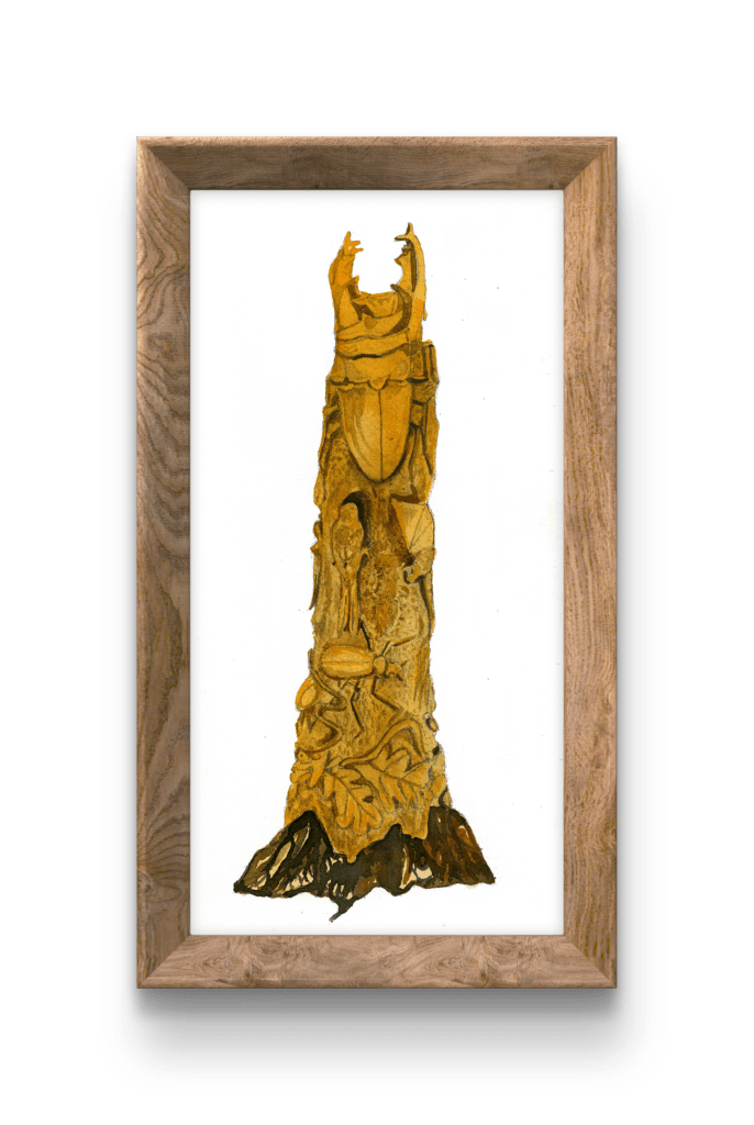 EastSheenMatters previously posted a photo of the oak wood sculpture near Sheen Gate at the link above on 28 April 2025. Local artist Bruce Houlder has now painted replicas of the sculpture from four sides. He will be exhibiting them at the Barnes Art Fair from 7th to 13th July 2025.