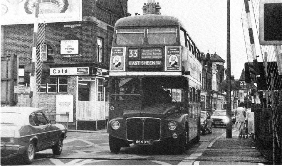 This picture is from 25th June 1983, and shows the very last Routemaster bus to make a scheduled journey over a level crossing anywhere in London, which was the one by our own dear Mortlake Station. (Other buses have gone across – and more importantly waited at – level crossings since for various reasons. But this was the last one to do it on a regular, scheduled route.)