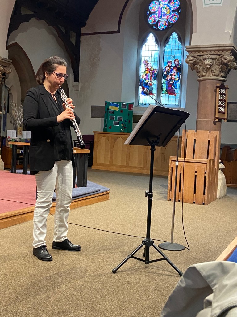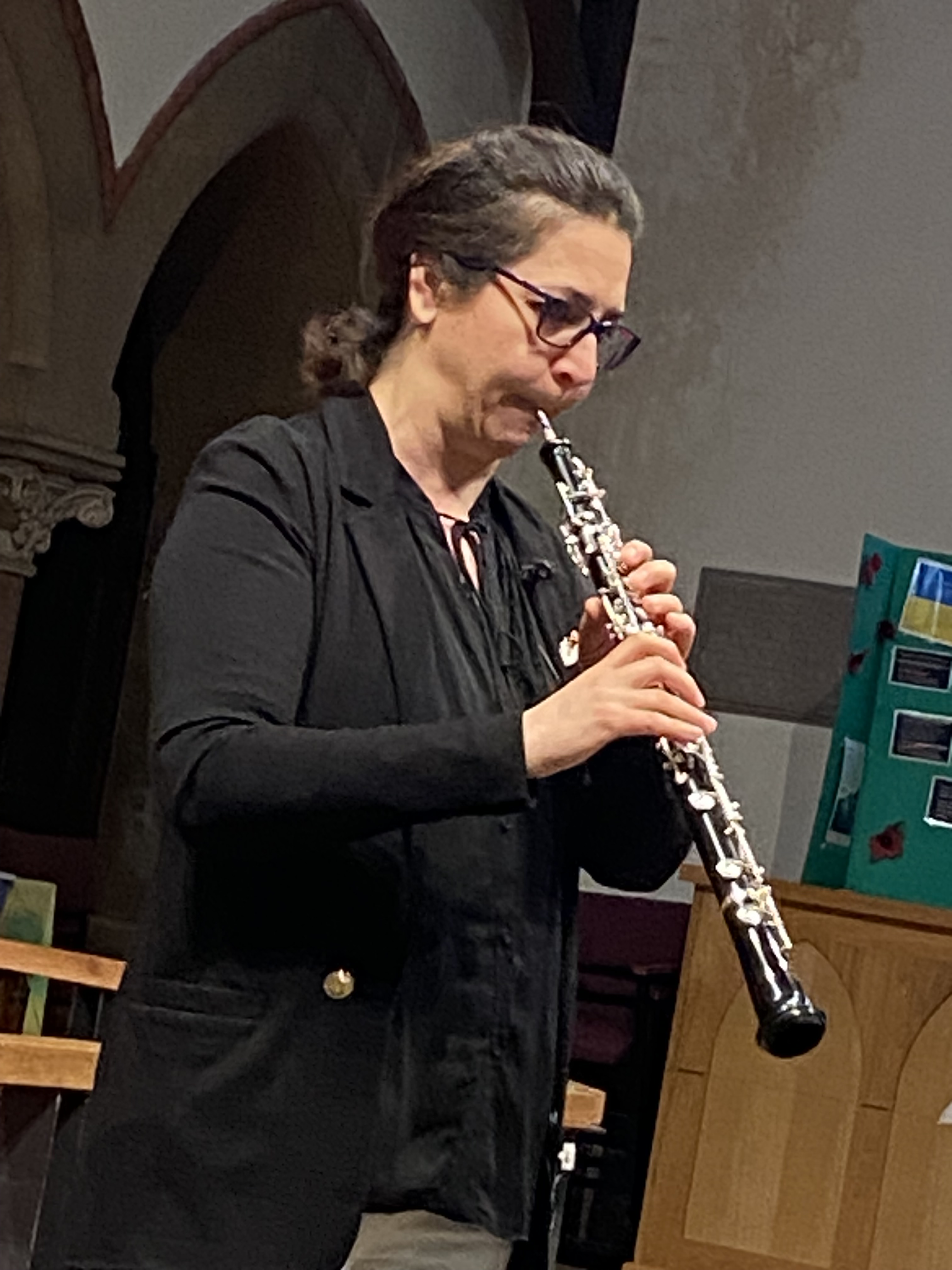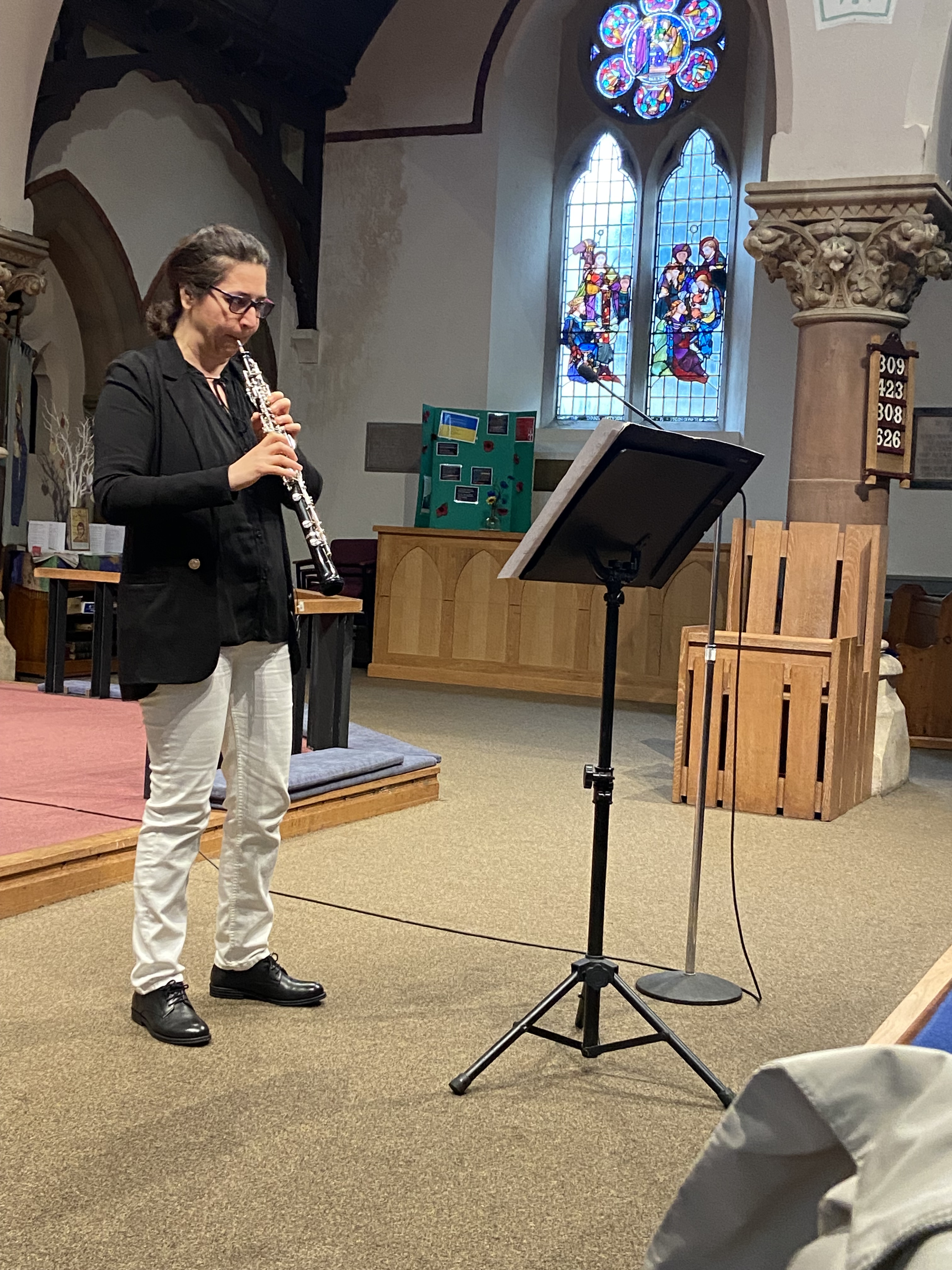 Her explanation of the instrument and its playing was fascinating. The oboe itself is an elegant looking instrument made primarily of ebony or rosewood. But vital to its playing are the cane reeds through which she breathes to create the sound. They are specially grown and made and adjusted. Damla has a stock of a thousand. They have to be changed at least weekly depending on frequency of use and venues. They are sensitive to climate, the weather and temperature.