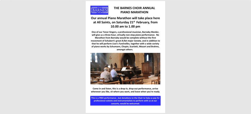 Barnes Choir Annual Piano Marathon