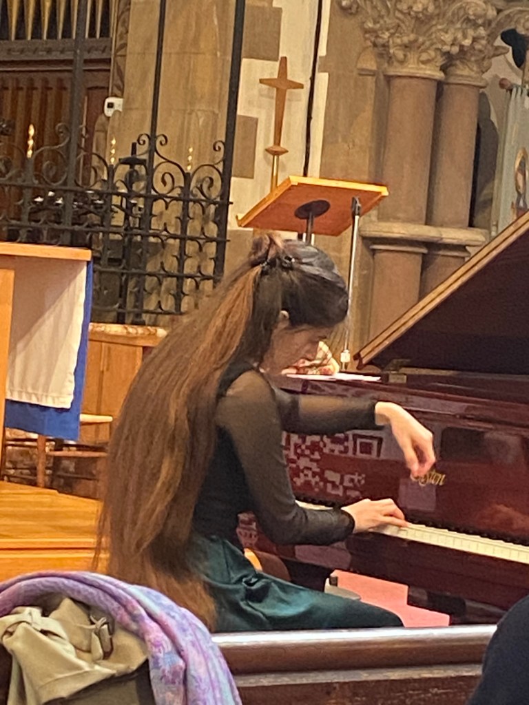 Alexia Daphne Eleftheriadou played Schubert and Chopin. The Finale from Sonata No 3 in B minor, Opus 58 was absolutely spell-binding. It just showed the benefit of being at a live concert, heightened by the intimate atmosphere of the church. It’s very different to listening to Classic FM!