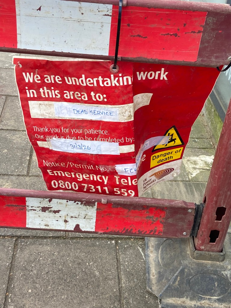 “Rush hour traffic on the Upper Richmond Road was again held up by traffic lights [this time] outside Sheen Sports. Having passed the traffic lights at 1pm, complete with attendant queues of traffic, I can report that not only is there no one working there but the job on the pavement is complete. The barriers and lights are serving no purpose other than to make life difficult and frustrating for thousands of road users.”