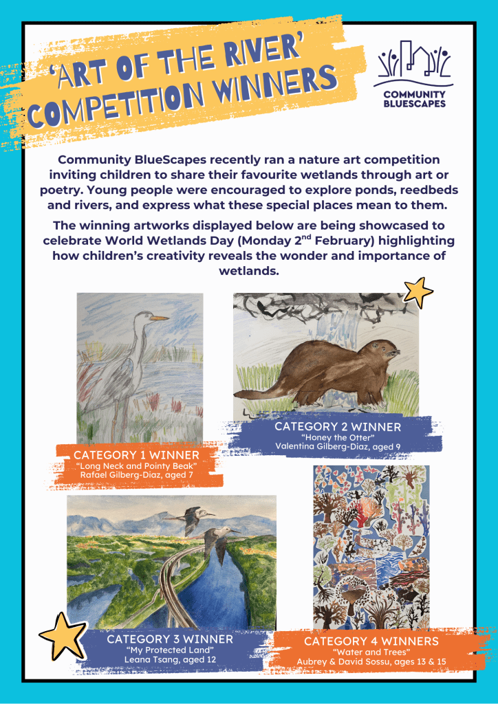 EastSheenMatters advertised this competition in November 2025 inviting young people to submit entries for a nature art competition. The winners have now been announced and you can see them below.